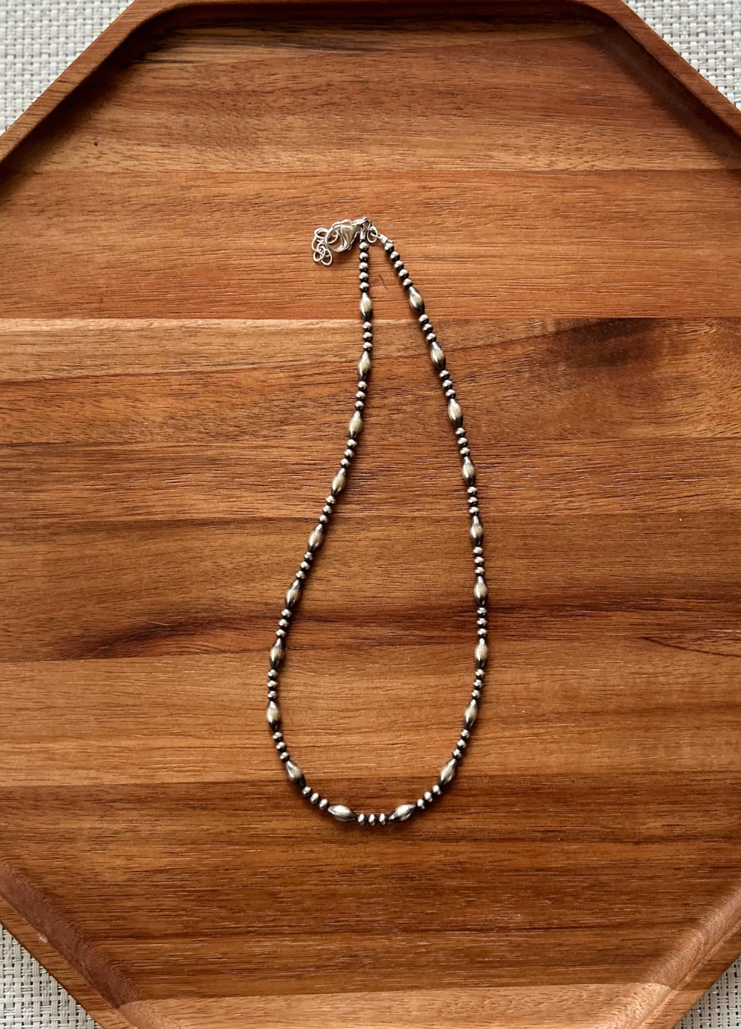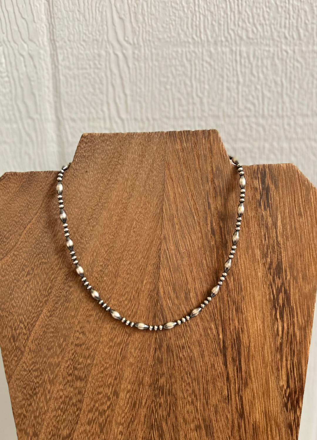 9mm torpedo and 3mm Navajo Pearls pair so well to make this the perfect layering piece. 14” with 1” extender.