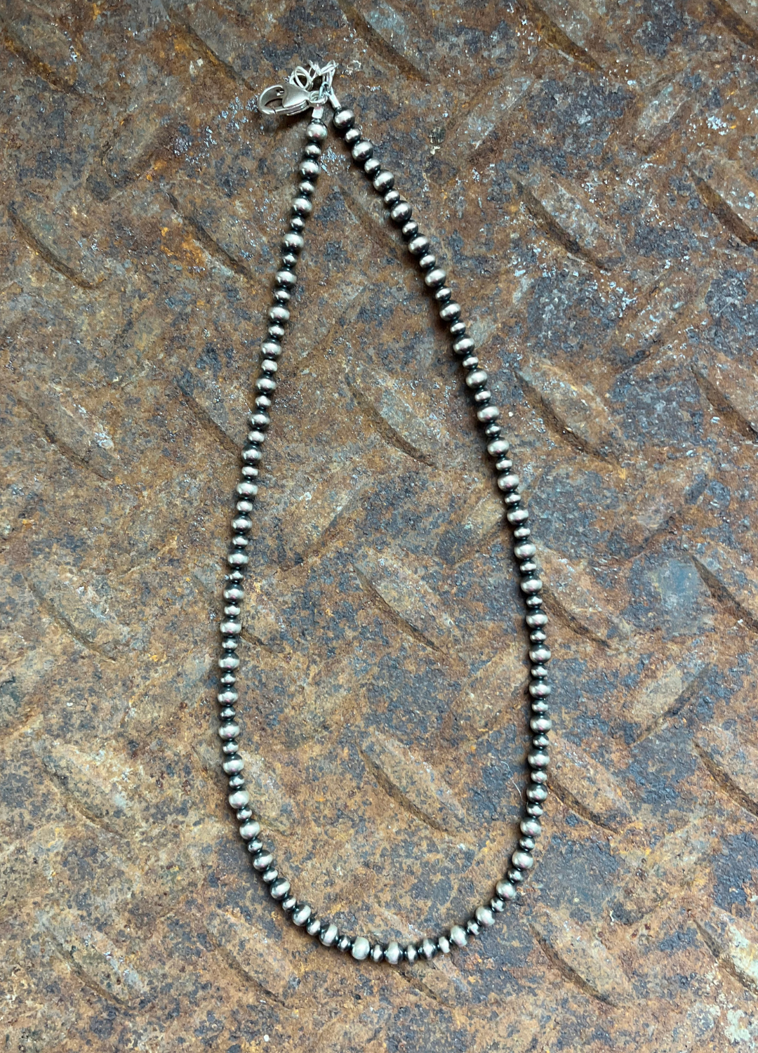 3mm and 4mm Navajo Pearls mixed together for this unique piece! Pictured is a 14" with a 1" extender