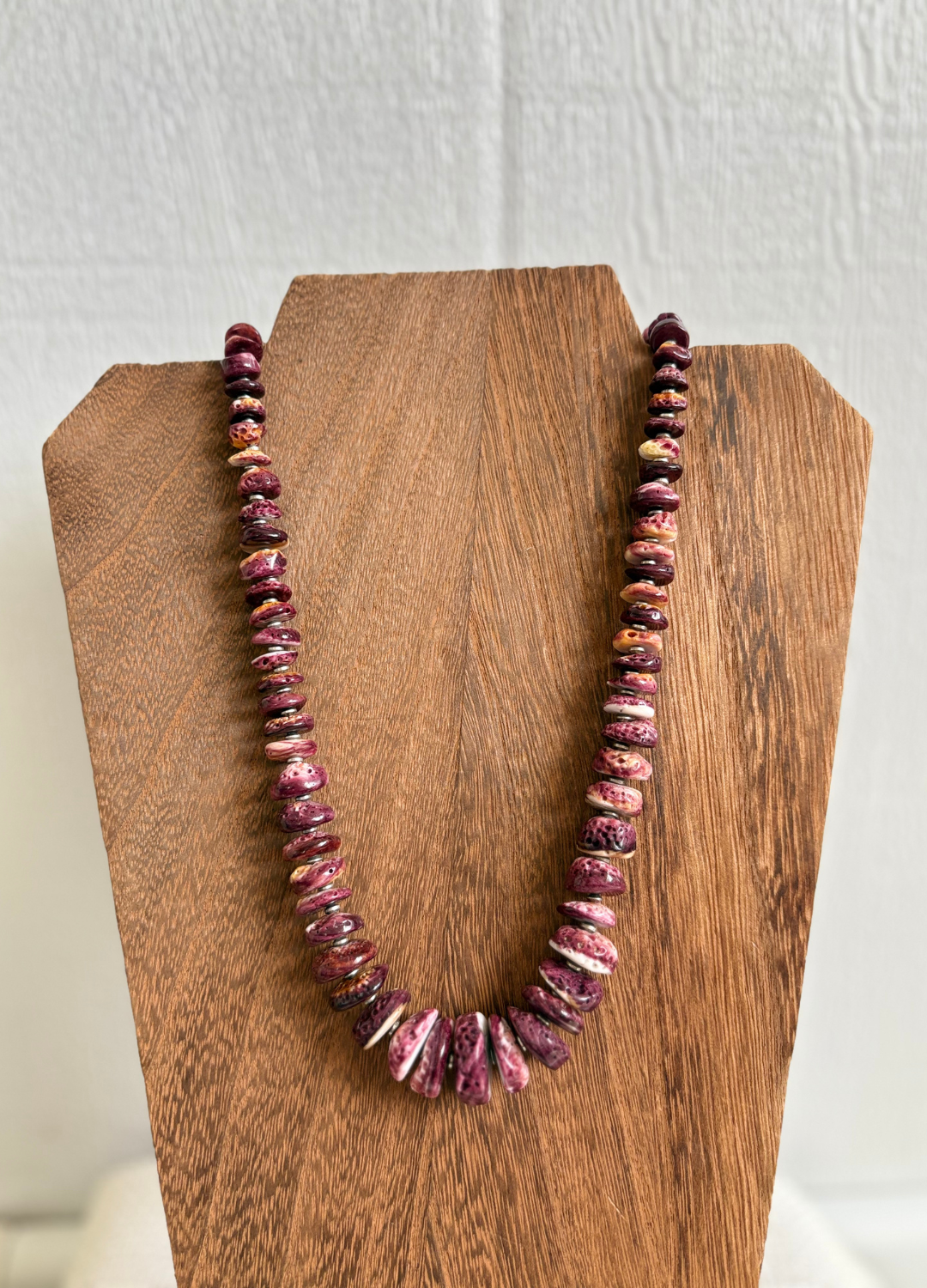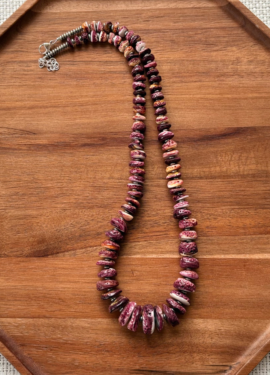 The perfect necklace to start fall, 8mm to 20mm paired with silver saucers. 22” with 2” extender.