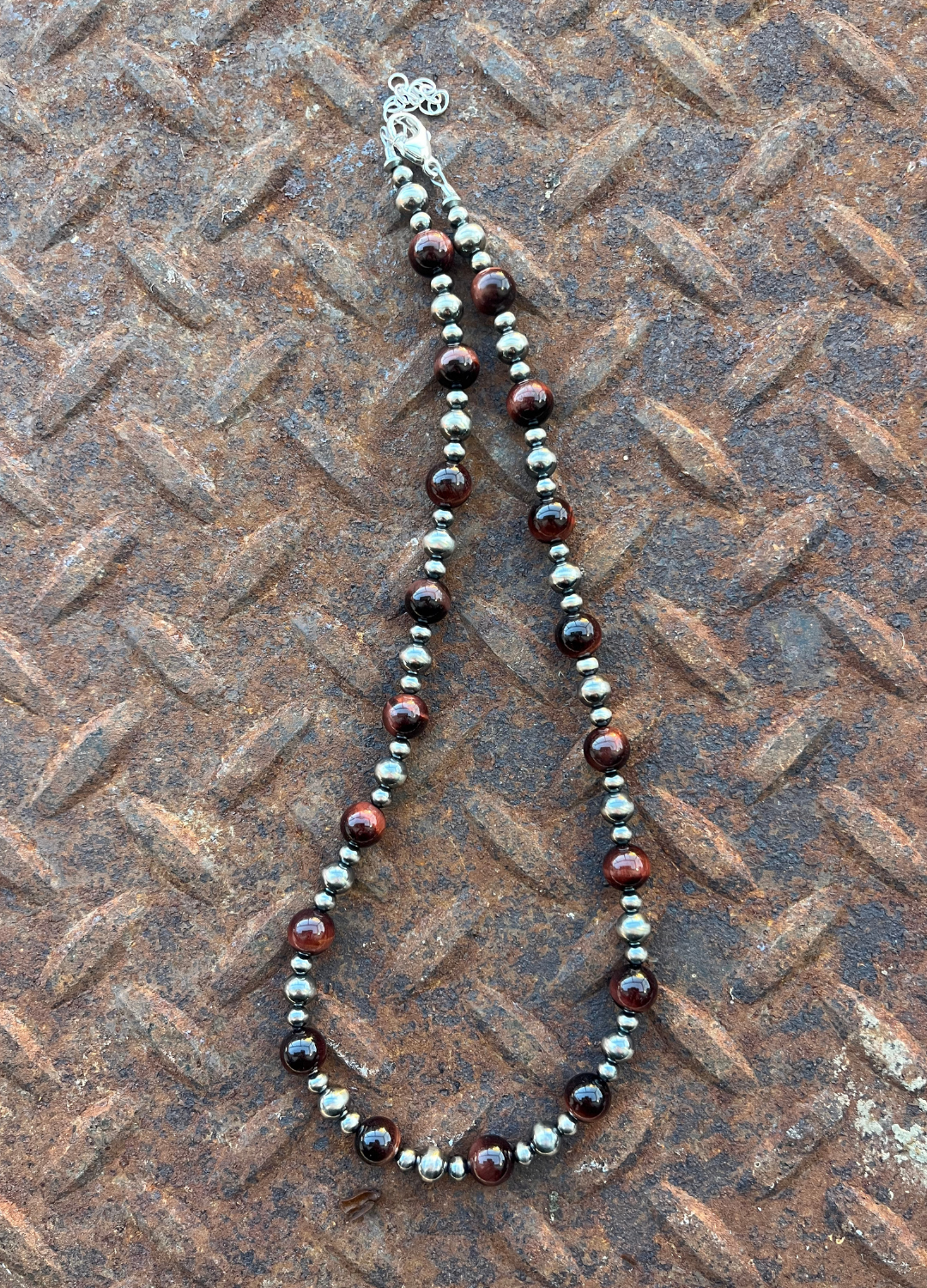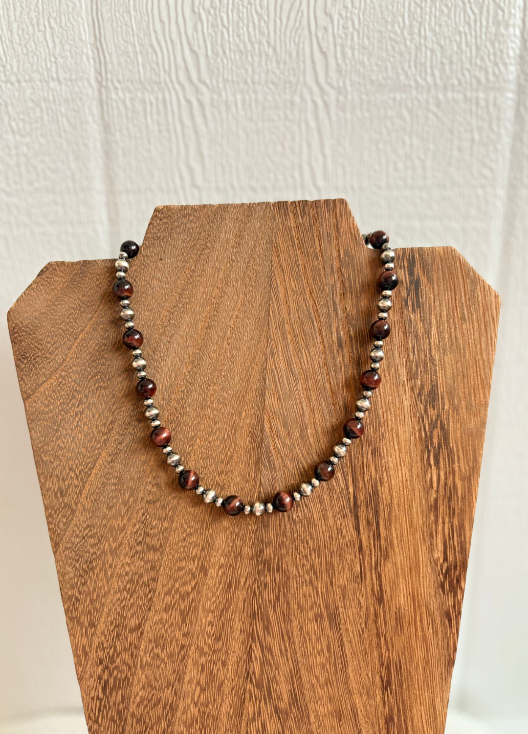 Red tiger eye is the perfect stone to welcome in the fall & colder months. This brown stone pairs well with 4mm and 6mm navajo pearls. 16" with a 2" extender