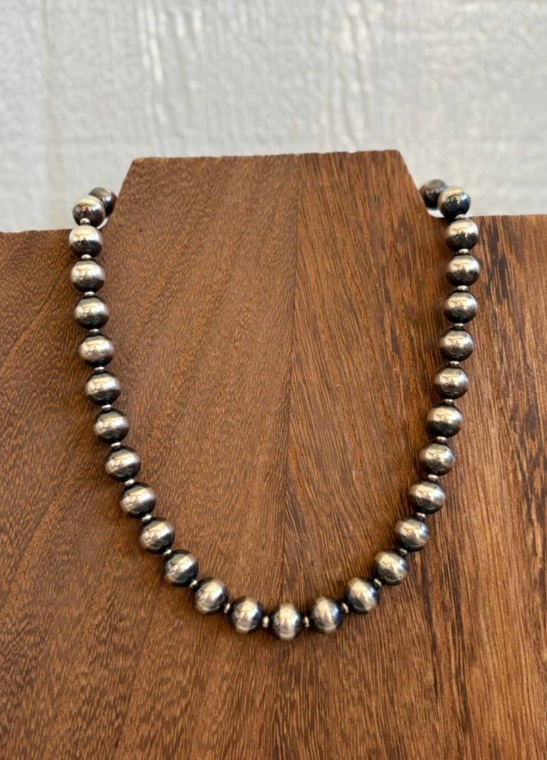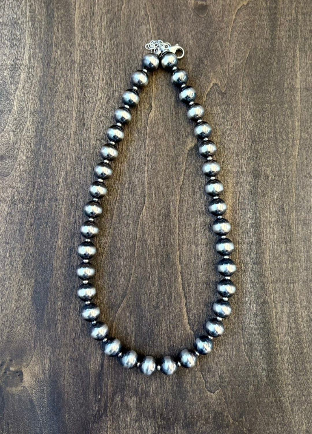 This is the best piece to add texture or a statement to a stack! 3mm and 10mm navajo pearls. Pictured is a 16" with a 2" extender