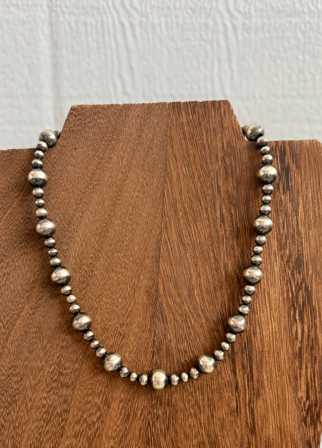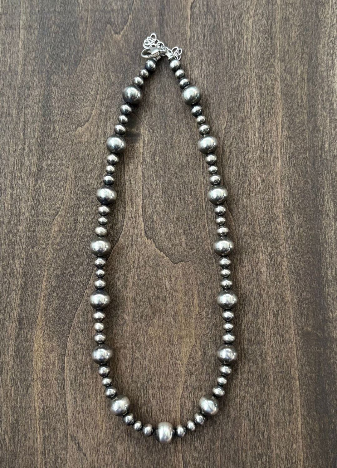 We love this fun piece that features 5mm, 6mm and 10mm Navajo Pearls. 16” with 2” extender.