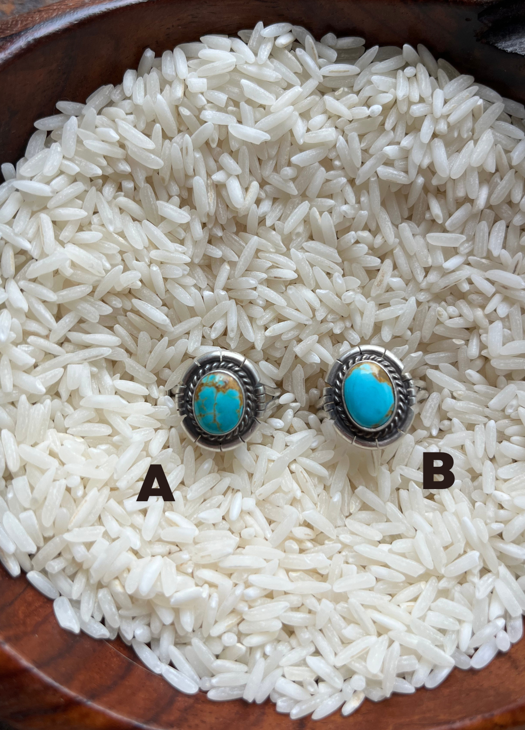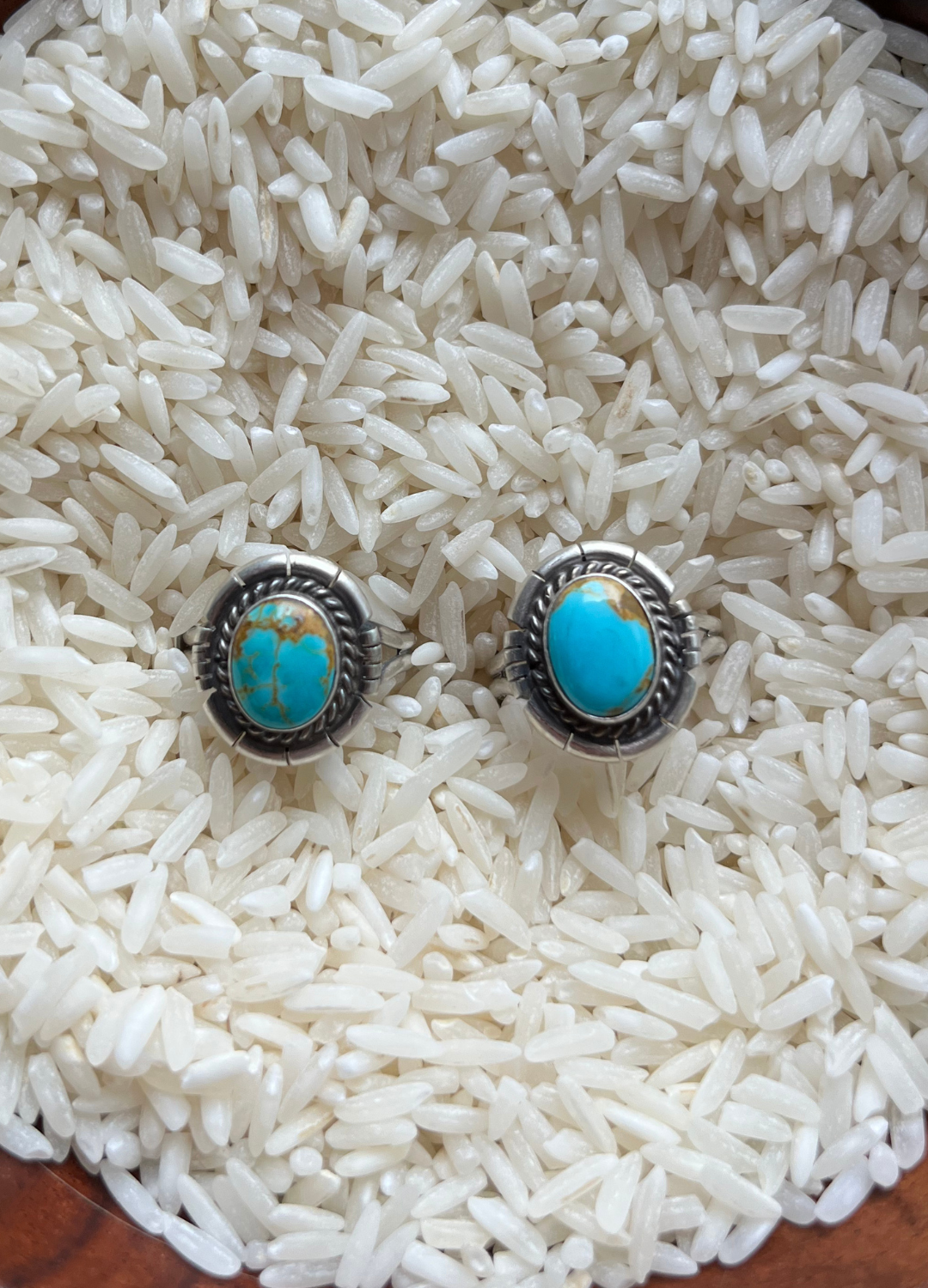 Turquoise stone with sterling silver. Stamped. One is a Size 7 and one is a Size 8!